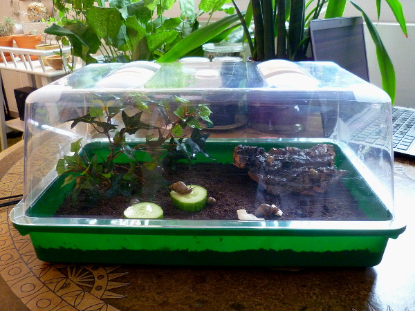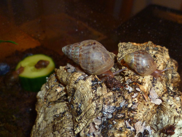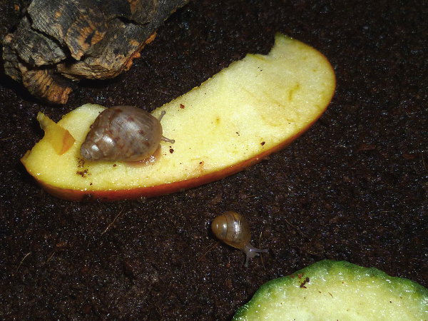 Innerhalb der ersten paar Tage sind ein paar der Schneckchen verstorben, aber seitdem ist nichts mehr vorgefallen und die übrigen 29 kriechen quietschfidel in ihrem Mini-Terra umher.