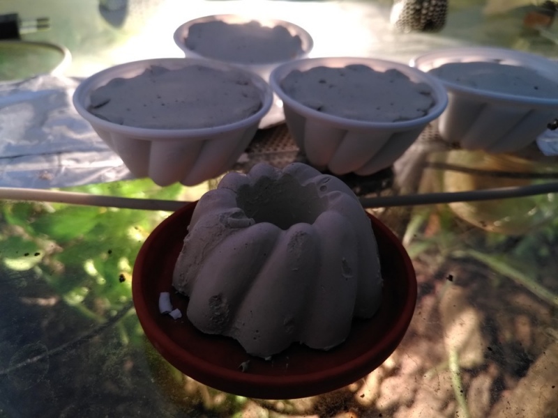 Ich fand die Idee so toll, dass ich es auch probiert hab. Meiner besteht nur aus Heilerde und Kalk für Hunde.Bin gespannt ob sie ihn annehmen. Ich hab ne Form gemacht( das Motiv sieht man aber auf dem Stein nicht so gut)