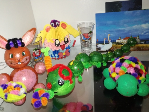 Vom Zuckertütenmonster habe ich nach seiner Bitte die ganz langen Zotteln am Schwanz herausgezogen, leider hielten die Haare nicht richtig