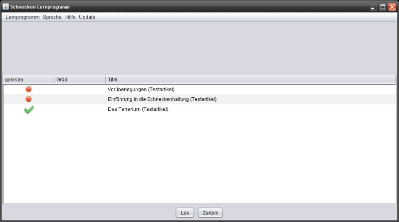 Das Schnecken-Lernprogramm ist, wie der Name schon vermuten lässt, eine Lernplattform für alle Schneckenhalter und die, die an der Schneckenhaltung interessiert sind. Um diesen Ansprüchen gerecht zu werden, könnt ihr in dem Programm drei sog. "Erfahrungsgrade" einstellen. Der Anfänger-Modus richtet sich an diejenigen, die noch keine Schnecken haben, sondern sich das alles erst einmal anschauen möchten. (Dafür ist das Programm auch wieder Freeware