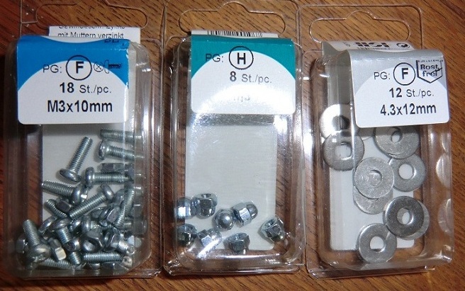 Dann die schrauben mit 2 Unterlegscheiben durch die Löcher gesteckt, und die Hutmuttern draufgeschraubt.