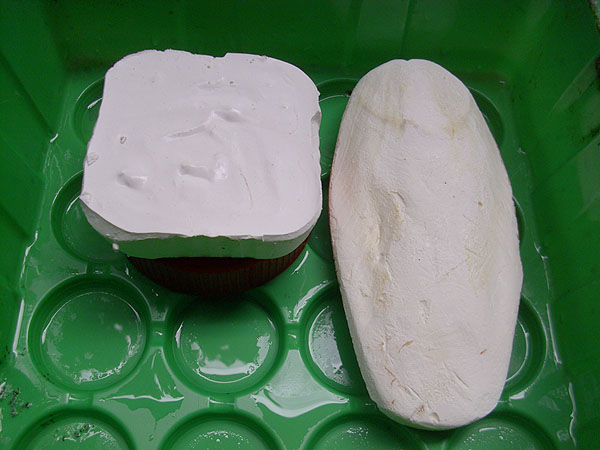 100 ml Wasser werden also mit 1/4 Teelöffel Agar-Agar verrührt und 5 Minuten gekocht; dabei verschwindet der leicht fischige Geruch, der anfangs entsteht. Nach etwas Abkühlung wird die Agar-Agar-Lösung in eine Form gegossen und mit soviel Calciumcarbonat verrührt, dass der Brei eine gipsartige Konsistenz bekommt.