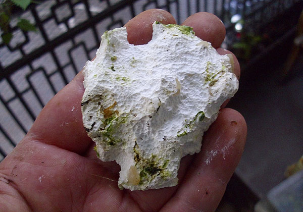 Bei Gartenkalk ist es ähnlich: zwar stehen da Inhaltsangaben von 85% oder mehr Calciumcarbonat, aber aus was besteht der Rest? Einige meiner Weinbergschnecken, die zuviel (?) Gartenkalk gefressen hatten, hatten Wachstumsstörungen, manche sind gestorben und zeigten eine gelbliche Verfärbung, die verdächtig an die Farbe des Gartenkalkpulvers erinnerte: