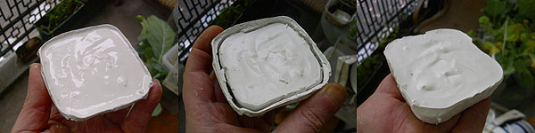 100 ml Wasser werden also mit 1/4 Teelöffel Agar-Agar verrührt und 5 Minuten gekocht; dabei verschwindet der leicht fischige Geruch, der anfangs entsteht. Nach etwas Abkühlung wird die Agar-Agar-Lösung in eine Form gegossen und mit soviel Calciumcarbonat verrührt, dass der Brei eine gipsartige Konsistenz bekommt.