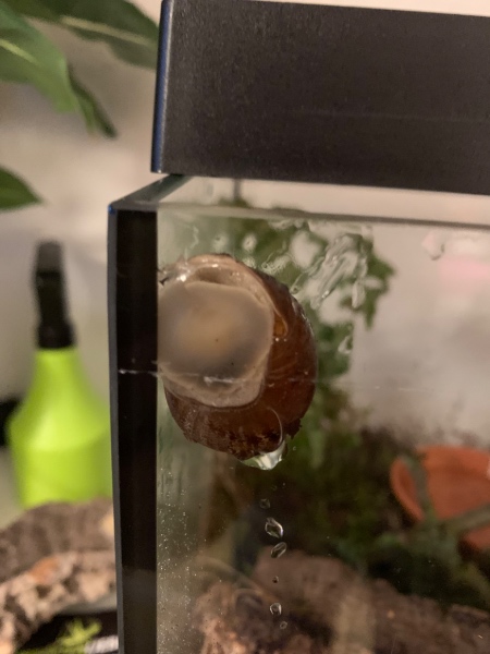 Nachdem sie zunächst munter umher gekrochen ist, sitzt sie nun in der Ecke und hat ziemlich viel Schleim am Gehäuserand sitzen. Der Fuß sieht auch anders geformt aus als sonst. Das kenne ich bisher nicht von ihr… Ist das normal oder sollte ich mir Sorgen machen?