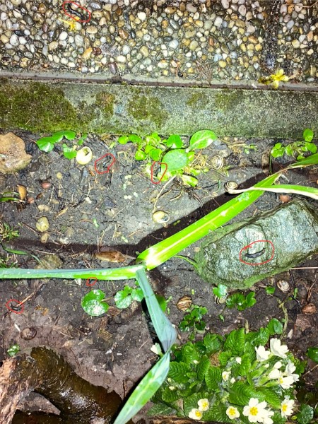 seit kurzem sind bei uns vereinzelt cornus, bänderschnecken und tigelschnegel unterwegs, bereits in massen die kantige laubschnecke sowie diese kleinen schnegel, die zum ende des letzten sommers plötzlich wie aus dem nichts aufgetaucht sind. heute war herrliches schneckenregenwetter und plötzlich der gesamte wegrand gesäumt von bänderschneckenhäusern, die am wochenende noch nicht da waren. nur leider alle leer, die meisten häuser intakt. rundum in der erde waren unzählige kleine dunkelfarbige nacktschnecken, glaube man kann sie am foto nicht recht gut erkennen. naja, in zwei bänderhäusern waren nackedeis beinahe gänzlich verschwunden und waren wohl beim abendessen.