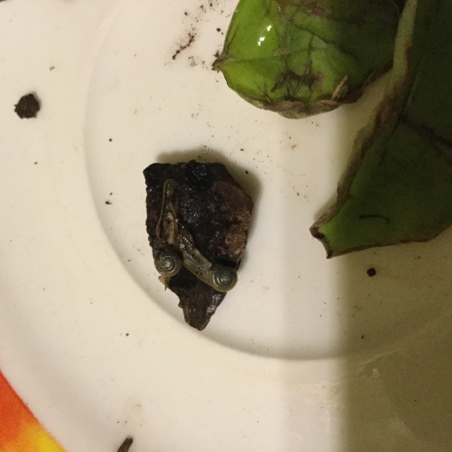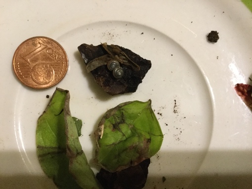 Dabei habe ich 2 kleine mini schnecken entdeckt. Die habe ich dann mal zuerst auf einen Teller mit dem Substrat Stück getan auf dem die gesessen sind. Natürlich hat meine kleine tochter ( fast 5) das sofort mitbekommen u sich richtig in die zwei verliebt
