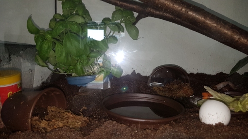Hallo, ich habe nun das erste mal mein großes Terrarium eingerichtet. Meine beiden größeren Schneckies sind nun umgezogen. Die anderen sind so klein (hab wohl Kümerlinge erhalten,aber bei mir können sie auch klein bleiben,dann lass ich sie halt in der Box,wenn sie nicht größer werden) das ich denke sie sind der Faunabox noch besser aufgehoben. Können die erfahrenden Schneckenbesitzer mal einen Blick drüber werfen und Tipps geben was ich noch besser machen könnte. 2x Sepia hol ich noch und in die Mitte will ich auch noch Laub legen,das muss ich aber erst noch backen. Pflanzen sind im Moment Basilikum und Efeu Tute. Ich habe echt keine Ahnung von Pflanzen und hab nur die beiden erkannt und mitgenommen,weil sie auf der Liste standen,die ich hier aus dem Forum habe.