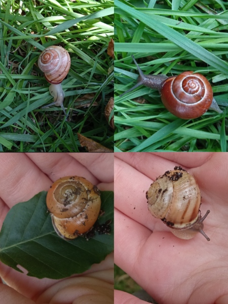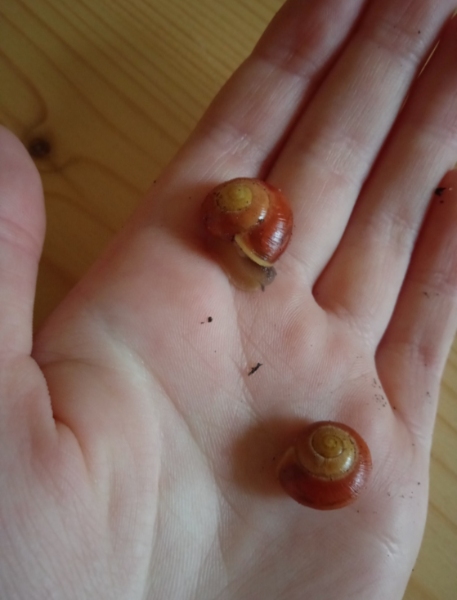 Dann noch eine Teenie orange/braune Bänderschnecke bei der ich aber noch nicht weiß ob Hain- oder Gartenbänderschnecke.