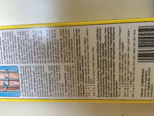 Ich möchte meinen Weinbergschnecken Kalk anbieten.Will nun eine Sepia zu ihnen legen und wollte wissen, ob diese richtig ist. Man kann es auf der Verpackung wahrscheinlich nicht so gut lesen, deswegen schreib ich es hier lieber auf: