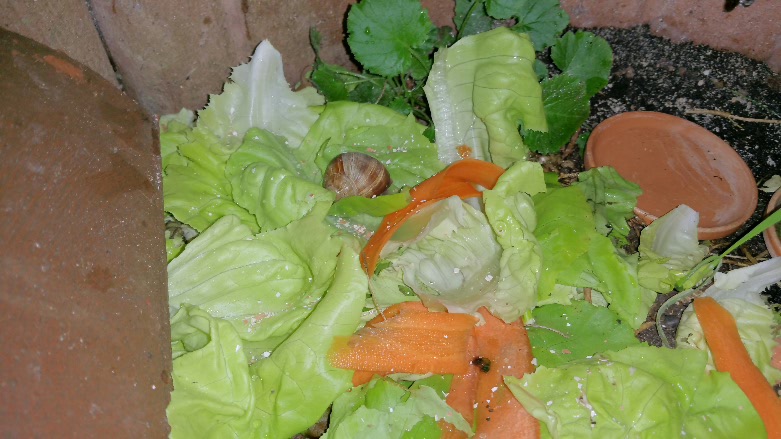bei uns im Garten leben viele Schnecken (hauptsächlich Weinbergschnecken). Ich lege regelmäßig Futter aus und es gibt kleine Schälchen mit Wasser sowie umgedrehte Dachziegel als Versteckmöglichkeit.
