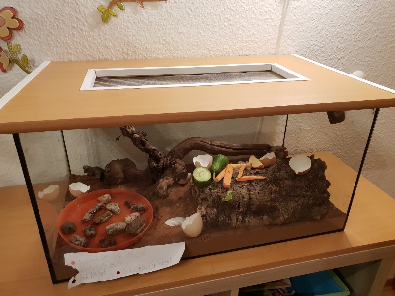 PS: Hier noch ein Foto vom Terrarium. Großzügiges auslegen von Grünzeug ist aufgrund der Jahreszeit leider nicht mehr möglich...