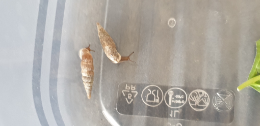 Und bei der anderen denke ich das es eine Knoblauch Glanz schnecke ist (mir ist der Artenschutz bekannt, daher gehören die auch in den Garten)