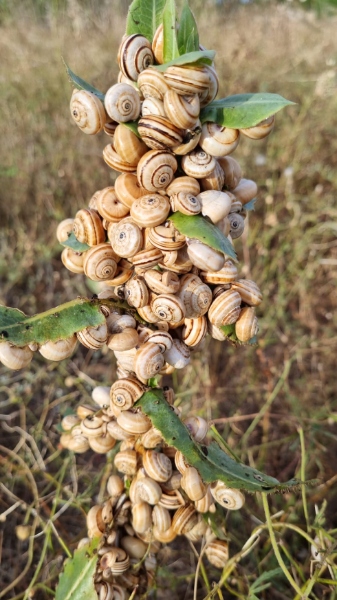 Heute bekam ich ein Foto aus LaMata. Ich traute meinen Augen nicht. Dort in der spanischen Hitze haben sich Millionen Schnecken versammelt. Es scheint so, als ob sie auf Regen warten. Keine bewegt sich und trotzdem sind sie am Leben.