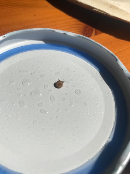 Neulich bei ALDI habe ich auf einer Nektarine eine kleine Schnecke gefunden. Habe sie heim geholt und versorge sie seitdem in einem Winz-„Terra“. Nun… was ist es denn für eine?