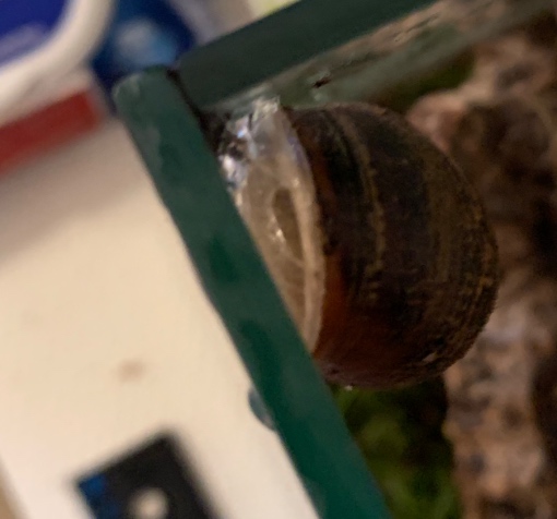 Nachdem sie zunächst munter umher gekrochen ist, sitzt sie nun in der Ecke und hat ziemlich viel Schleim am Gehäuserand sitzen. Der Fuß sieht auch anders geformt aus als sonst. Das kenne ich bisher nicht von ihr… Ist das normal oder sollte ich mir Sorgen machen?