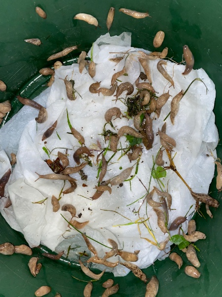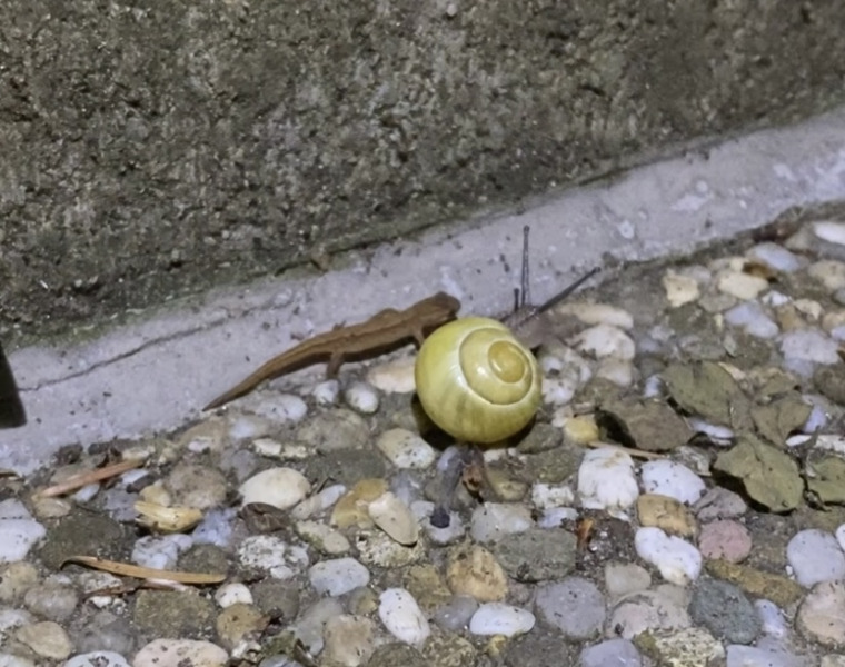 seit kurzem sind bei uns vereinzelt cornus, bänderschnecken und tigelschnegel unterwegs, bereits in massen die kantige laubschnecke sowie diese kleinen schnegel, die zum ende des letzten sommers plötzlich wie aus dem nichts aufgetaucht sind. heute war herrliches schneckenregenwetter und plötzlich der gesamte wegrand gesäumt von bänderschneckenhäusern, die am wochenende noch nicht da waren. nur leider alle leer, die meisten häuser intakt. rundum in der erde waren unzählige kleine dunkelfarbige nacktschnecken, glaube man kann sie am foto nicht recht gut erkennen. naja, in zwei bänderhäusern waren nackedeis beinahe gänzlich verschwunden und waren wohl beim abendessen.