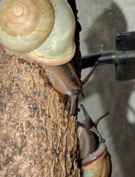 ich habe bei 3 Schnecken einen weißen kleinen Knubbel/Fleck hinter dem rechten Fühler entdeckt. Sind das die Geschlechtsorgane? 2 meiner Pleurodonte Isabellas halten seit Stunden ein Liebesspiel ab. Vor 2 Wochen habe ich Eier gefunden, die gestern geschlüpft sind. Sind die, die diesen Fleck haben nun geschlechtsreif?