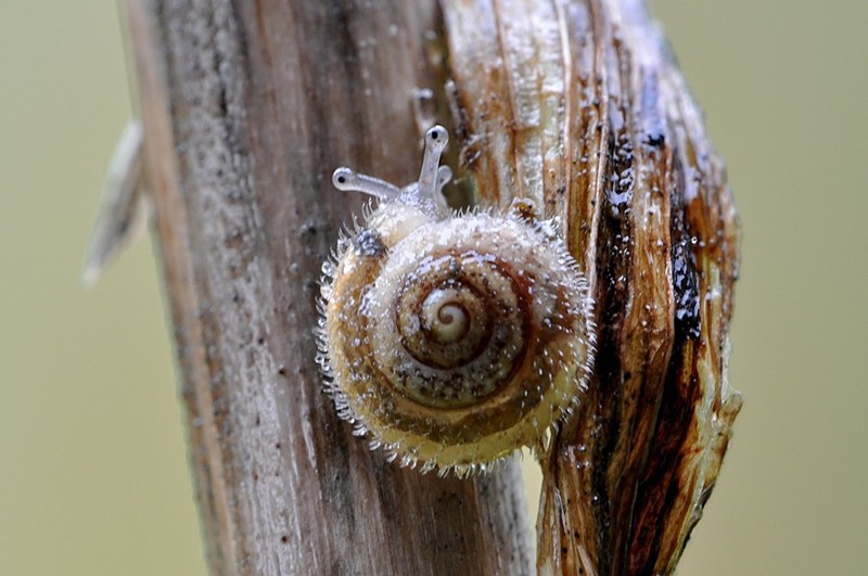 ich habe in meinem Garten eine kleine Schnecke gefunden, deren ganzes Haus mit einer Art Borsten bewachsen ist (siehe Foto).