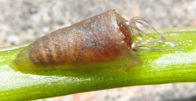 von einem Angler, der Pflanzenteile am Haken hatte (austreibender Flutender Wasserhahnenfuß), nahm ich eine Probe mit nach Haus. An den Pflanzenteilen sind die auf dem Foto eigenartigen Gebilde angeheftet. Die Takel könnten Kiemen sein, ansonsten sehe ich so etwas zum ersten mal. Hat jemand eine Idee, was es sein könnte?