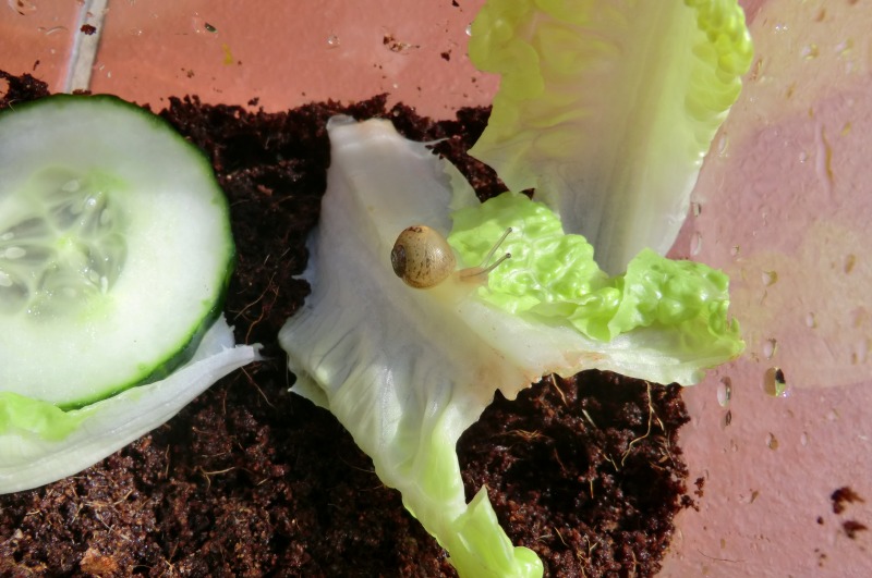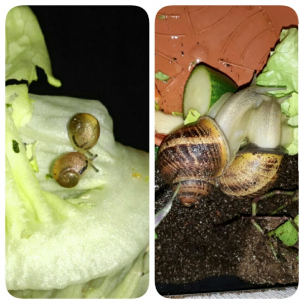 Bin mir recht sicher, dass dein Schnecke ein Cornu Aspersum Baby ist. Also einen Gestreifte-Weinbergschnecke. Hab auch solche großgezogen und dass erinnert mich schon sehr an meine kleine Gruppe hier.