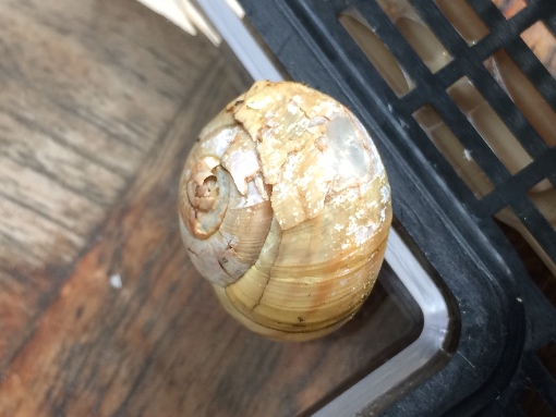 Am Samstag regnete es hier den ganzen Tag und wieder fand ich auf dem Balkon zwei Schnecks. Beide größere Exemplare. Eine mit einem ziemlichen Gehäuseschaden. Fotos von den beiden letzten habe ich beigefügt. Beide fressen viel (Gurke, Tomate, Sepia, Haferflocken) und scheinen fit.
