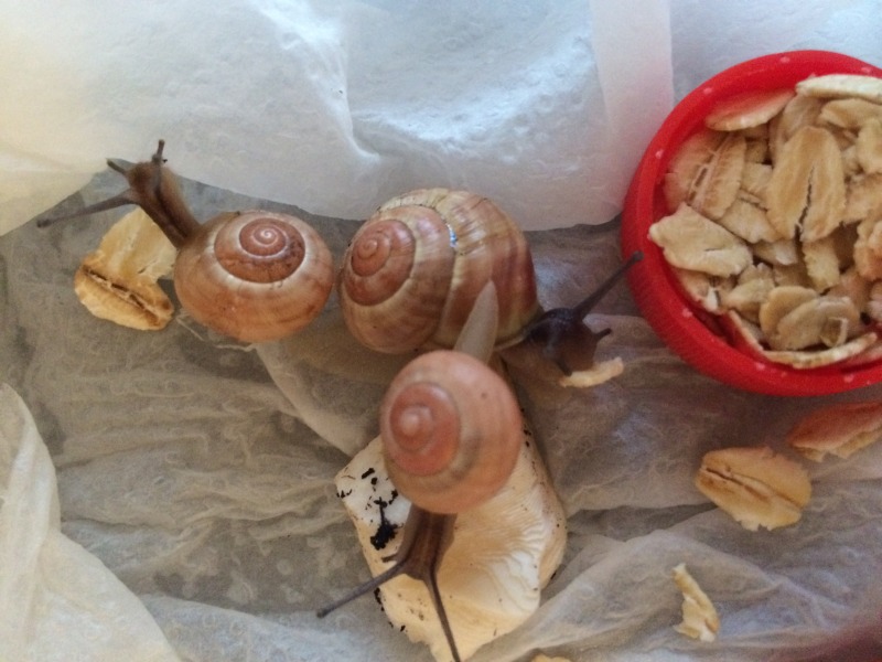 Vor vier Wochen fand ich zwei kleine (ca. 1-Cent-Stück große) und eine Woche später ein größeres Exemplar (etwas kleiner als 1 Euro). Inzwischen hatte ich mir zur Verpflegung ein mittleres Faunarium angeschafft. Dort schlugen sich alle den Bauch voll und waren jeweils am nächsten Tag verschwunden. Zu der Zeit war die Witterung mal etwas kühler. Die Große und eine von den Kleinen ist seitdem nicht mehr aufgetaucht, weshalb ich vermute, sie sind entweder tot oder halten Winterruhe. Die andere Kleine tauchte inzwischen zweimal wieder auf, fraß und war wieder weg.