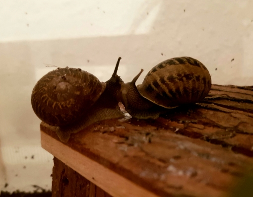 Tatsächlich fand ein Freund 2 weitere Cornu Aspersum in einer ausgetrockneten Regentonne. So gesellten sich am 4. Mai Aurora und Susi hinzu.