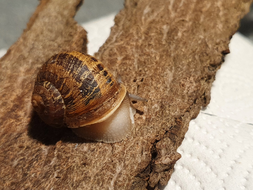 Seit einer guten Woche versuche ich meine 3 kleinen Neuzugänge (Cornu aspersum) abends im Seemandelblätterbad zu behandeln, ihre Häuschen wachsen leider kruschelig.
