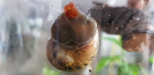 Gefleckte Weinbergschnecke legt rote Eier ???
