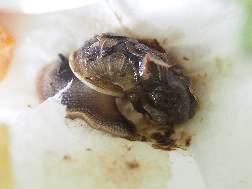 ... ich fand heute Morgen eine schwer verletzte Gefleckte Weinbergschnecke, die noch lebt. Fotos stelle ich im Anhang rein. Soweit ich feststellen kann, hat sie keine Verletzungen im Innenbereich. Aber das Haus fehlt bzw. ist arg mitgenommen. Sie kann sich minimal bewegen, frisst aber nicht.Ich hab's sie nun in das alte Faunarium gegeben, feuchte Küchenrolle rein, Brennnesselpflanze, Sepiaschale, Karotte, Apfel & eingeweichte Haferflocken. Noch hat sie nichts davon angenommen. Ich lasse sie ab sofort in Ruhe ...