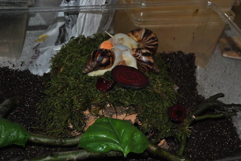 Da meine Schleimer alle unterschiedliche Vorlieben haben,ist jeder Napf anders gefüllt.....