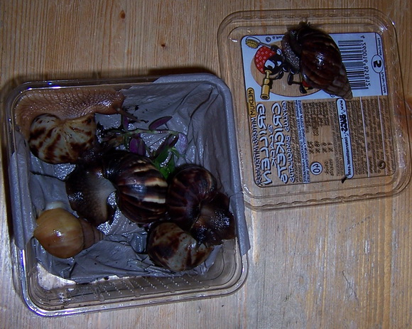Ich muss wohl ziemlich ratlos und angewidert geguckt haben ,denn es kam so ein hilfsbereiter Verkäufer und fragte mich : Sie wollen Schnecken zum verfüttern ?Wir haben auch lebende da!