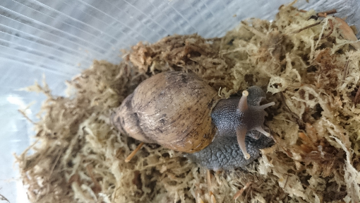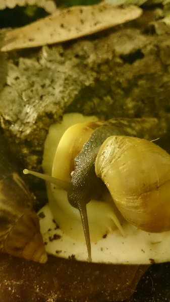 Ich schlenderte so durch die Regale und dann natürlich auch zu den Reptilien. Ui, dachte ich, jetzt haben die ja auch schon Schnecken. Ich klebte sofort an der Scheibe des Terrariums. Mein Mann meinte, "Schatz, schau mal die Schlange hier." Schlangen?! was interessieren mich die Schlangen wenn es hier Schnecken gibt... "Ja, Hase, toll...." Und dann sah ich Ihn. Geknautschtes Gesicht und total schmutzig. Liebe auf den ersten Blick (wahrscheinlich erst einmal nur einseitig).. Fulica Rodatzii, ohhh muss ich haben. "HAAAAAAAAsssseeeeee"