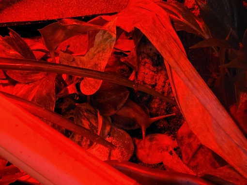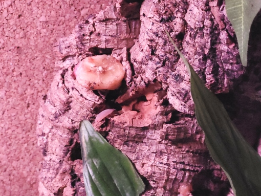 Nun haben wir letzte Woche noch einmal einen Versuch mit orangen Porcellio laevis gestartet, weil diese wohl mit höherer Luftfeuchtigkeit besser klar kommen als die Kubaner. Leider ist auch von diesen Asseln so gut wie nie etwas zu sehen im Terrarium. Wir haben zwar etliche bei der Eiersuche am Wochenende in den Korkteilen sitzen sehen aber sie bewegen sich von dort nicht weg.