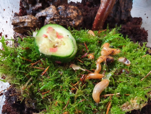 Das Terrarium wurde, meiner Meinung langsam zu klein, Sie hatten sich prächtig entwickelt und haben alles gefressen, was angeboten wurde.