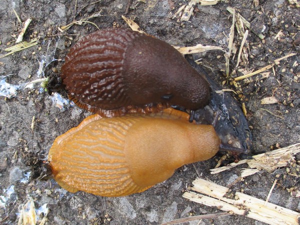 gestern sah ich diese beiden auf dem Weg (kleine Straße zwischen Wiesen, Mülheim an der Ruhr, NRW). Keine Ahnung, was sie da so hingebungsvoll mampften, aber ob ich das wirklich wissen will? Die beiden hatten eine "Sitzlänge" von um die 25 mm. Die Art ist vermutlich nicht zu bestimmen?