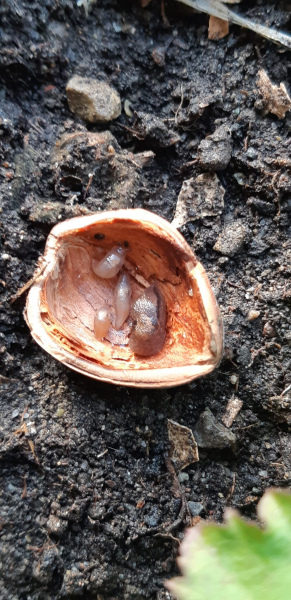 Deine elfenbeinfarbene Schnecke muss deshalb nicht unbedingt ausgebüxt sein. Sie kann auch nach der Eiablage verstorben und gefressen worden sein. Tote Artgenossen gehören auch zum Nahrungsspektrum der Wegschnecken.