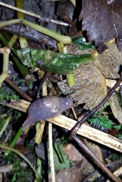 Ehrlich gesagt habe ich keine Ahnung, wie ihre Arten heißen. Kenne mich mit Nacktschnecken echt nicht aus. Aber solche habe ich vorher nie in echt gesehen. Sonst sehr ich immer solche braunen mit starken Mantelschild und schwarze mit rotem Fuß.