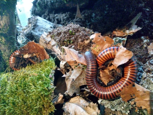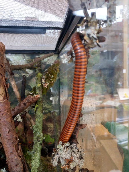 Gestern sind die Tausendfüßler mit ihrem Mitbewohner in ein größeres Terrarium umgezogen. Es geht allen blendend und wir haben auch ein Tausendfüßlergelege gefunden, was wir separiert haben. Sie sind nun in einem anderen Terrarium untergebracht, damit wir sie besser im Auge haben.