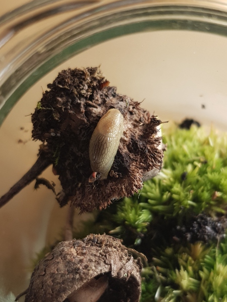 Ich habe heute im Garten ein paar Eicheln gesammelt für ein Bastelprojekt und habe dabei aus Versehen ein kleines Nacktschnecken-/Schnegel-Baby mit ins Haus gebracht! Ich weiß leider nur sehr wenig über (Nackt)Schnecken, deshalb wollte ich mal fragen, ob hier vielleicht jemand weiß, um welche Art es sich handelt (nach eigener Recherche könnte es z.B. eine Kleine Wegschnecke/Igelschnecke sein):