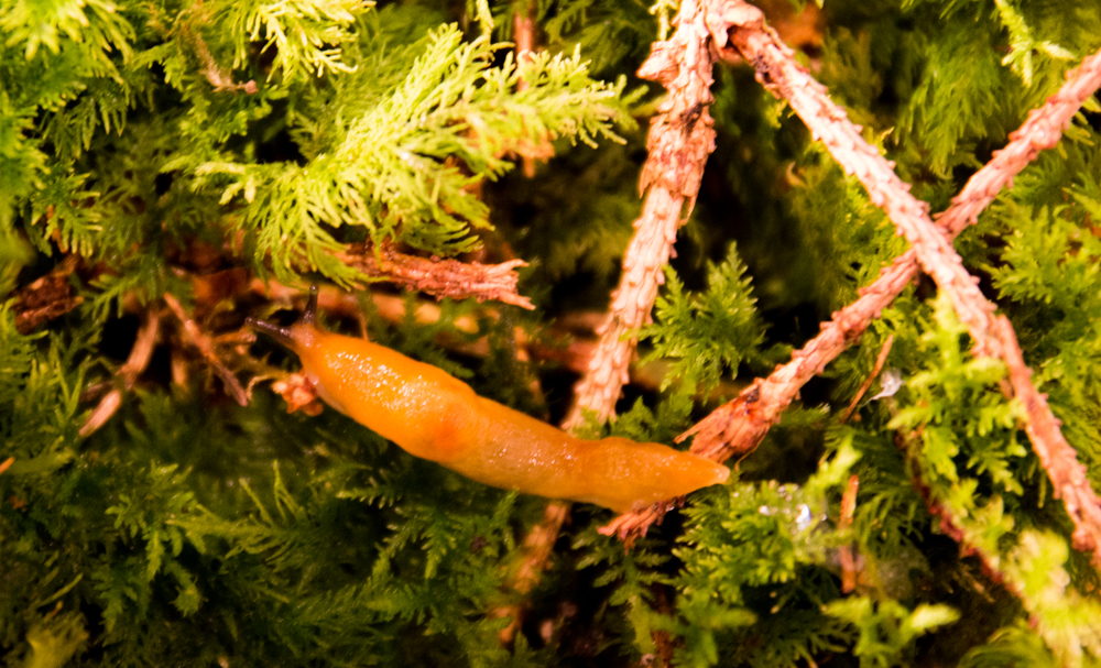 Ich habe mit dem Moos offenbar einen kleinen blinden Passagier eingeschleppt. Da er ein wirklich hübscher kleiner "Nackter" ist, habe ich mal ein Bild gemacht um ihn Euch zu zeigen