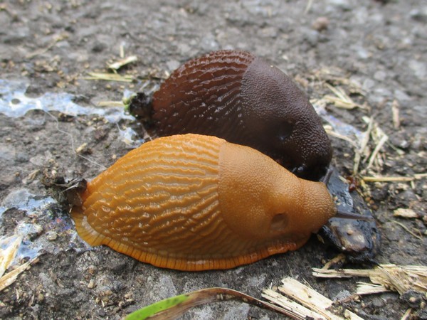 gestern sah ich diese beiden auf dem Weg (kleine Straße zwischen Wiesen, Mülheim an der Ruhr, NRW). Keine Ahnung, was sie da so hingebungsvoll mampften, aber ob ich das wirklich wissen will? Die beiden hatten eine "Sitzlänge" von um die 25 mm. Die Art ist vermutlich nicht zu bestimmen?