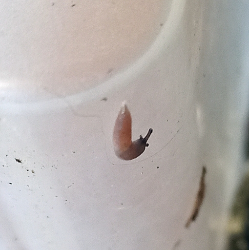 Nun aber zu meiner Frage - mit der Walderde habe ich mir offenbar Schneckeneier "eingefangen". Nun krabbeln eine ganze Menge unfaßbar winziger Nacktschnecken rum, so kleine habe ich noch nie gesehen. Die Eier müssen eine Größe von höchstens einem halben Millimeter gehabt haben, die kleinen Schnecks sind gestreckt grade mal einen Millimeter lang, grau-schwarz in der Färbung, soweit das überhaupt zu erkennen ist. In Ruhe sind sie kleiner als die Hinterlassenschaften der Asseln.
