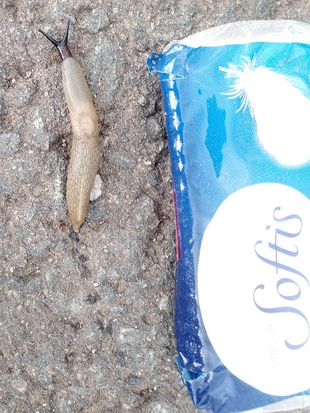 -gefunden Vormittags auf dem (noch) feuchten Radweg neben unzähligen Wegschnecken