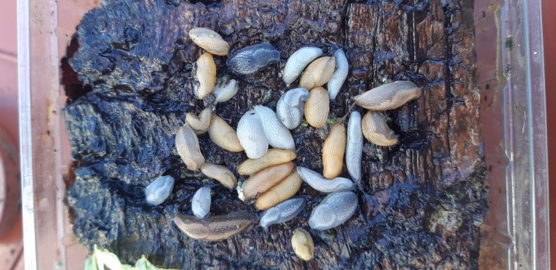 Deine elfenbeinfarbene Schnecke muss deshalb nicht unbedingt ausgebüxt sein. Sie kann auch nach der Eiablage verstorben und gefressen worden sein. Tote Artgenossen gehören auch zum Nahrungsspektrum der Wegschnecken.