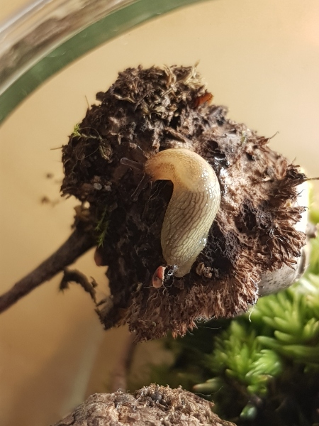Ich habe heute im Garten ein paar Eicheln gesammelt für ein Bastelprojekt und habe dabei aus Versehen ein kleines Nacktschnecken-/Schnegel-Baby mit ins Haus gebracht! Ich weiß leider nur sehr wenig über (Nackt)Schnecken, deshalb wollte ich mal fragen, ob hier vielleicht jemand weiß, um welche Art es sich handelt (nach eigener Recherche könnte es z.B. eine Kleine Wegschnecke/Igelschnecke sein):