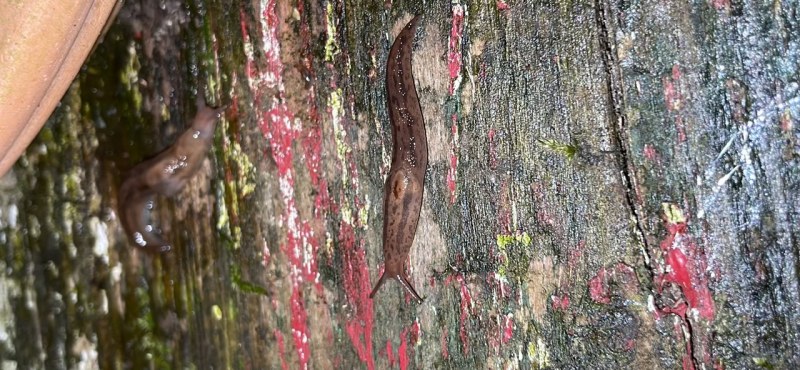 Die restlichen Fotos zeigen wohl den Gewächshausschnegel (Ambigolimax valentianus) in seiner typischen Färbung. Es gibt diese Tiere auch einfarbig braun ohne Zeichnung sowie fast braunschwarz, wenn die Zeichnung den gesamten Körper bedeckt.