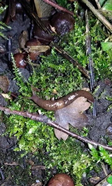 Ehrlich gesagt habe ich keine Ahnung, wie ihre Arten heißen. Kenne mich mit Nacktschnecken echt nicht aus. Aber solche habe ich vorher nie in echt gesehen. Sonst sehr ich immer solche braunen mit starken Mantelschild und schwarze mit rotem Fuß.