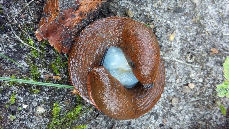 Es handelt sich um eine grosse Wegschneckenart bei der Paarung, vermutlich die Spanische Wegschnecke (Arion vulgaris). In Frage kommen aber auch die Rote Wegschnecke (Arion rufus) oder allenfalls die Schwarze Wegschnecke (Arion ater).